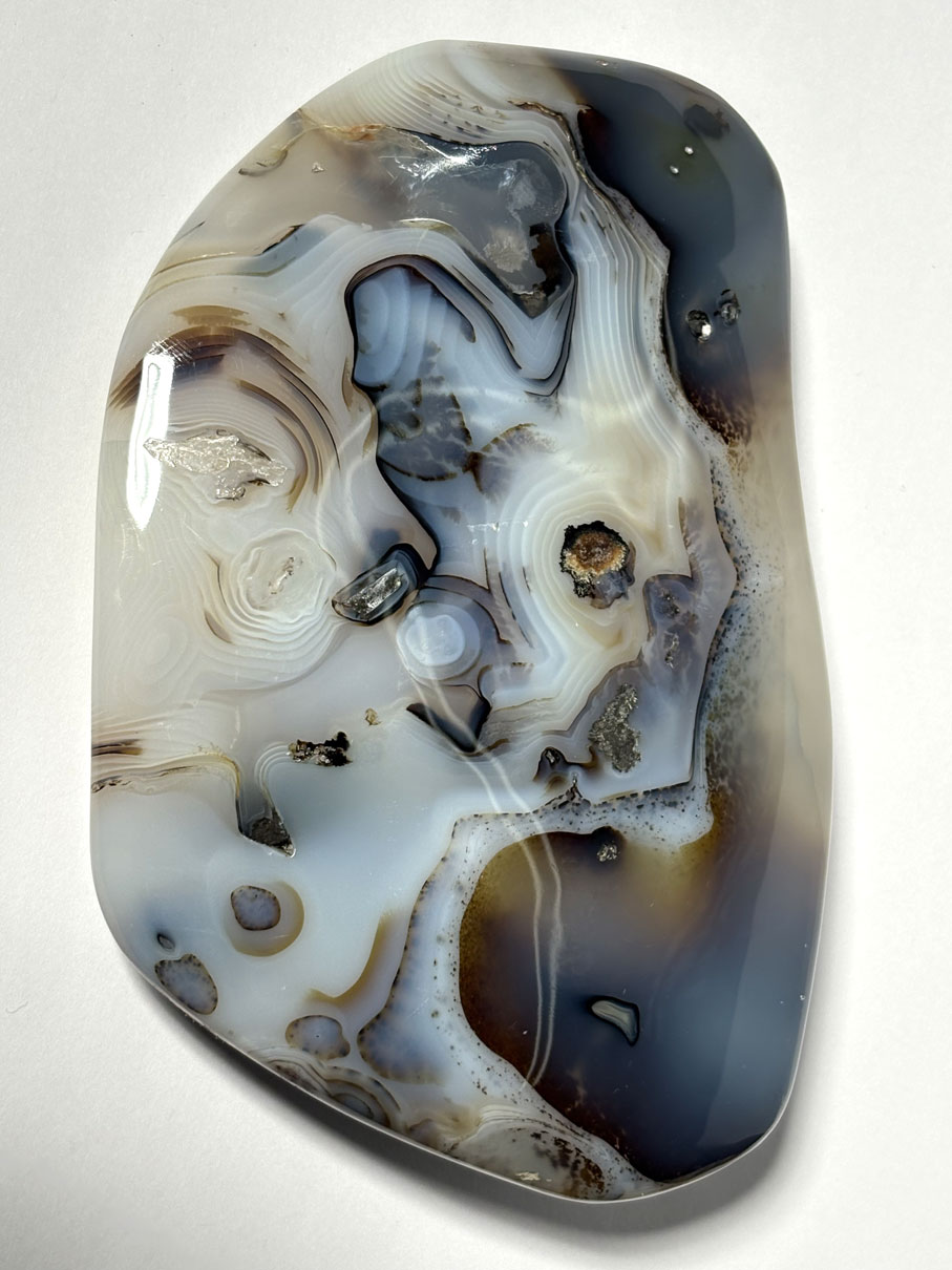 Matériau dense et chimiquement stable, l’agate est résistante à l’altération et particulièrement adaptée à la taille et au polissage décoratif.