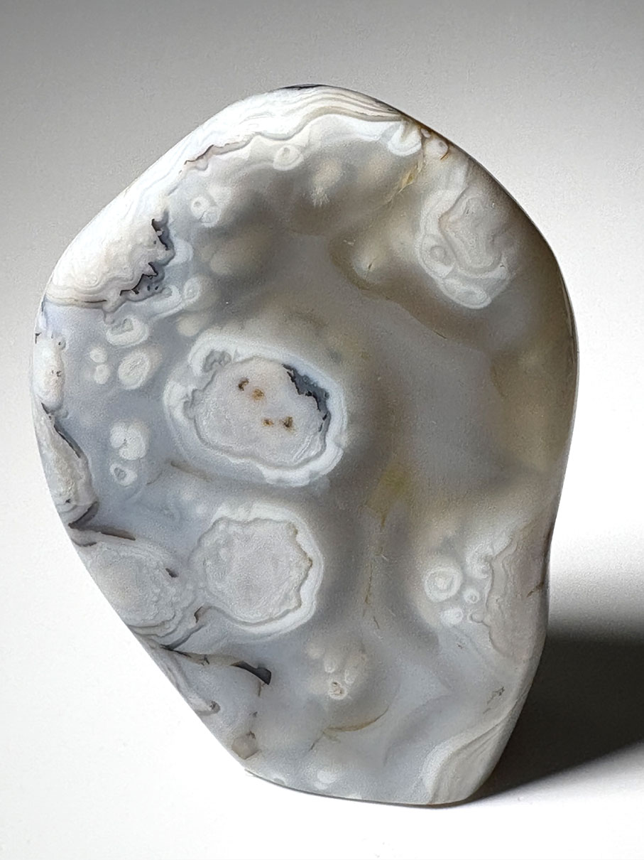 Les agates malgaches sont très recherchées pour la richesse de leurs dessins naturels et la qualité de leur polissage, offrant des pièces à la fois esthétiques et géologiquement intéressantes.