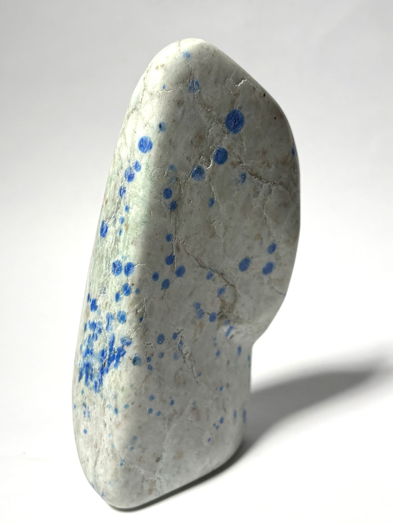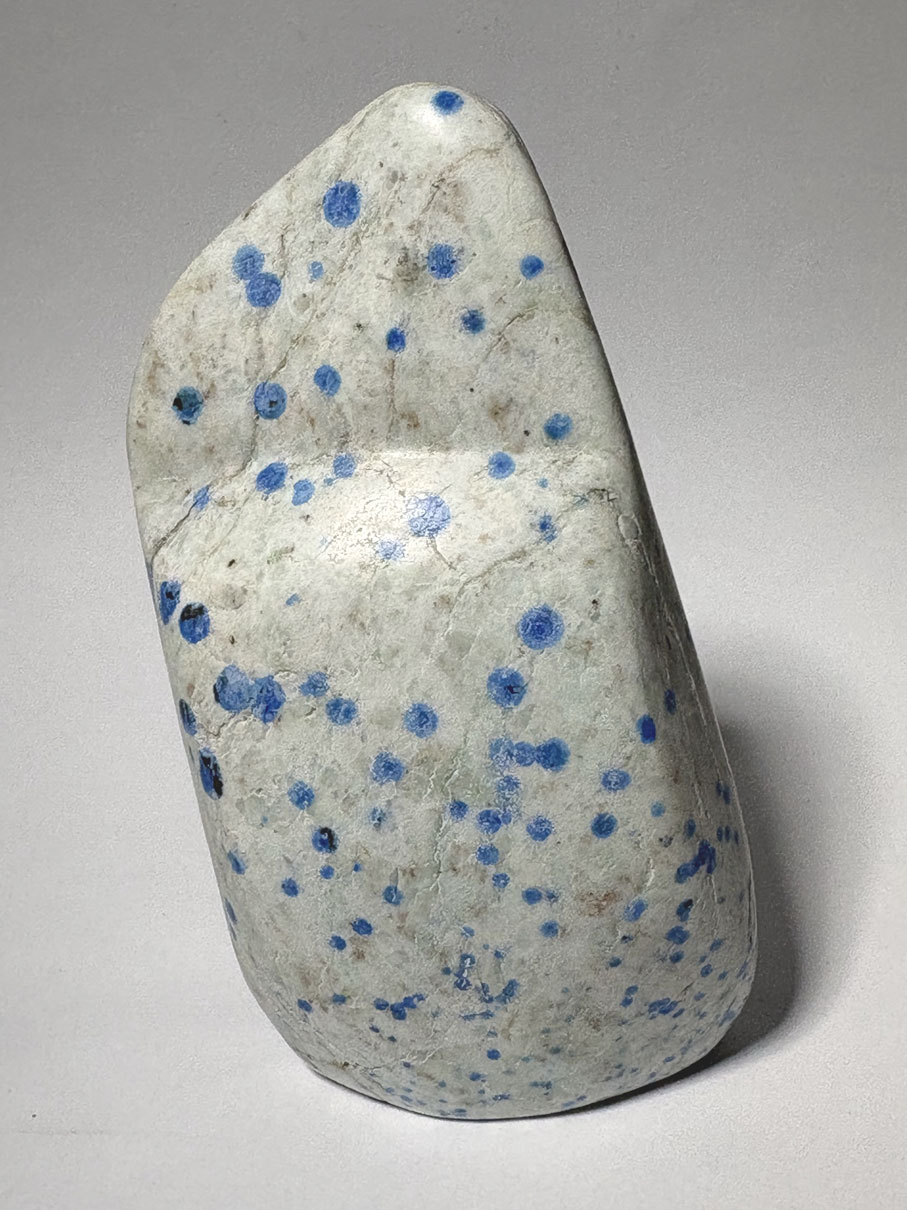 L’« azurite K2 » désigne une roche granitique claire provenant des pentes du K2, contenant des inclusions sphériques d’azurite. Il ne s’agit pas d’un minéral unique, mais d’un assemblage rocheux.