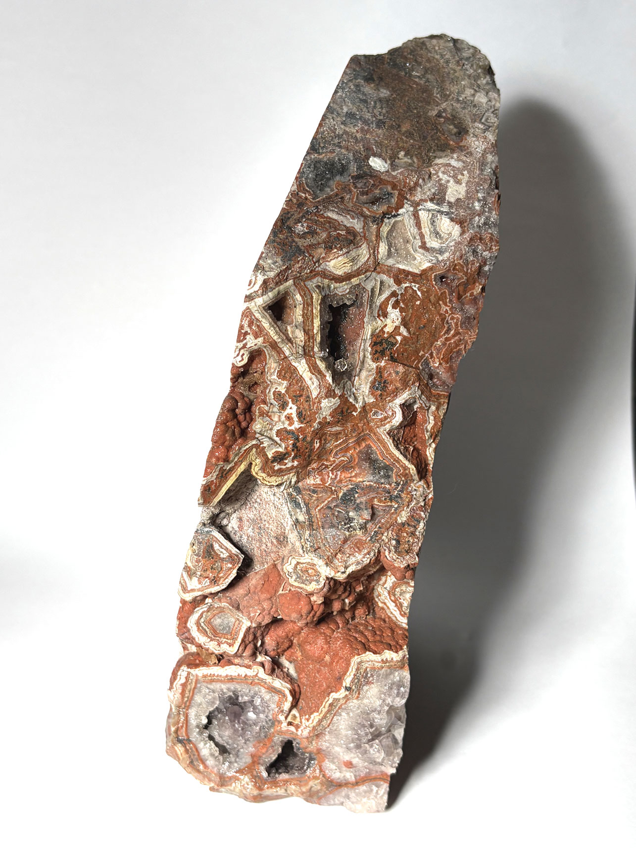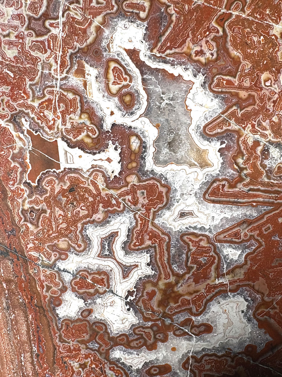 L’agate est réputée pour sa résistance et sa durabilité, ce qui en fait une pierre populaire pour la joaillerie, la sculpture et la décoration. Les motifs uniques et contrastés de chaque spécimen sont le résultat de la lente cristallisation de la silice dans des conditions hydrothermales