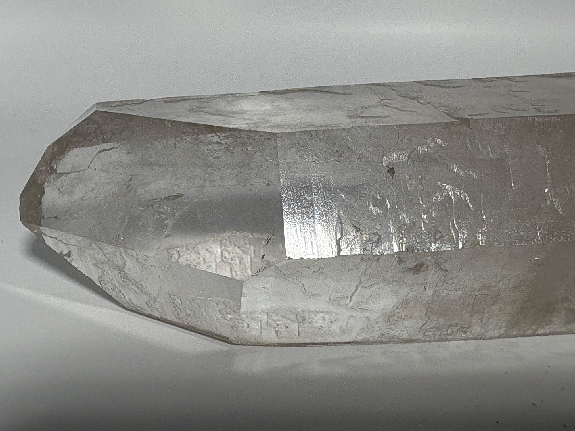 Sur le plan cristallographique, il cristallise dans le système trigonal. Sa structure interne repose sur un assemblage tridimensionnel de tétraèdres SiO₄ partageant leurs atomes d’oxygène. Le quartz fumé se présente le plus souvent sous forme de cristaux prismatiques bien développés, parfois en amas, mais peut également être massif.