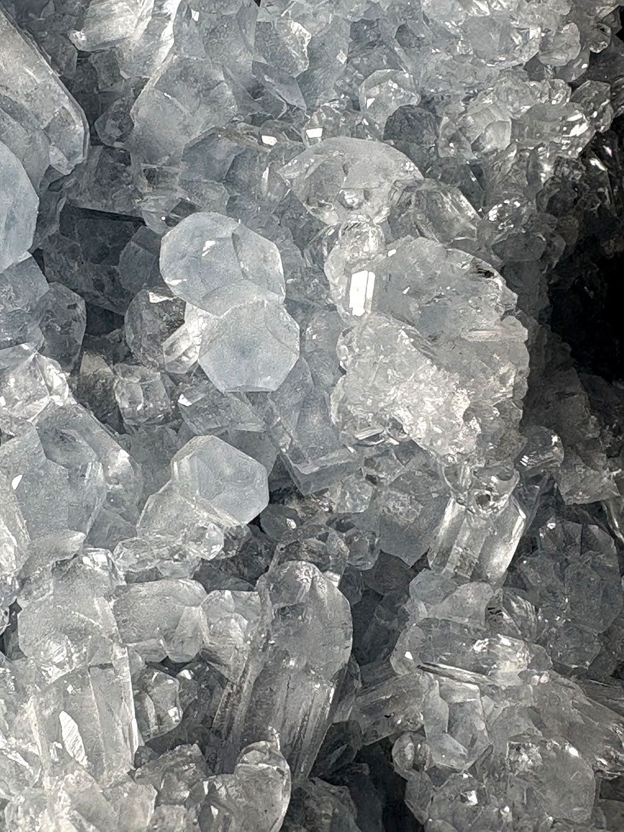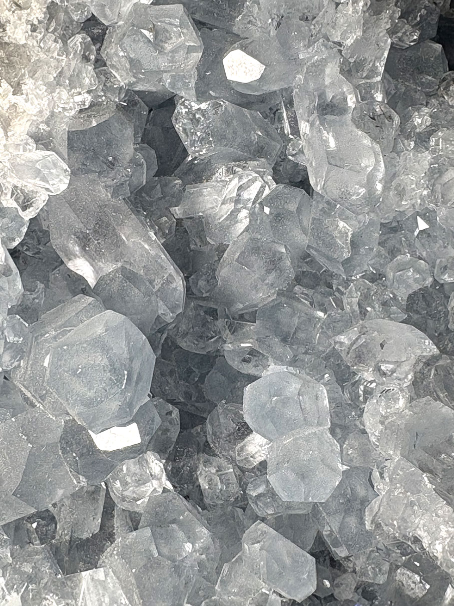 La célestine malgache est particulièrement recherchée pour la pureté de ses cristaux et la beauté de sa couleur bleue naturelle, ce qui en fait une pièce majeure en collection minéralogique et en décoration.