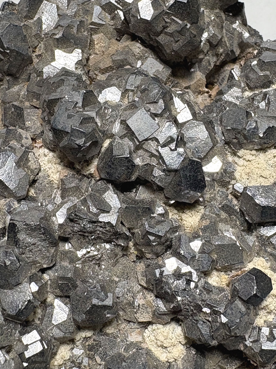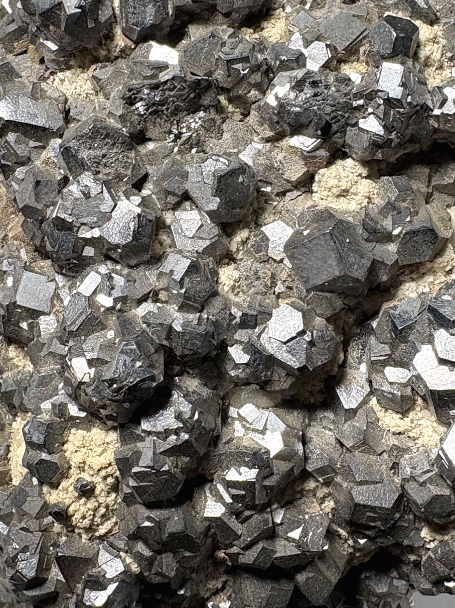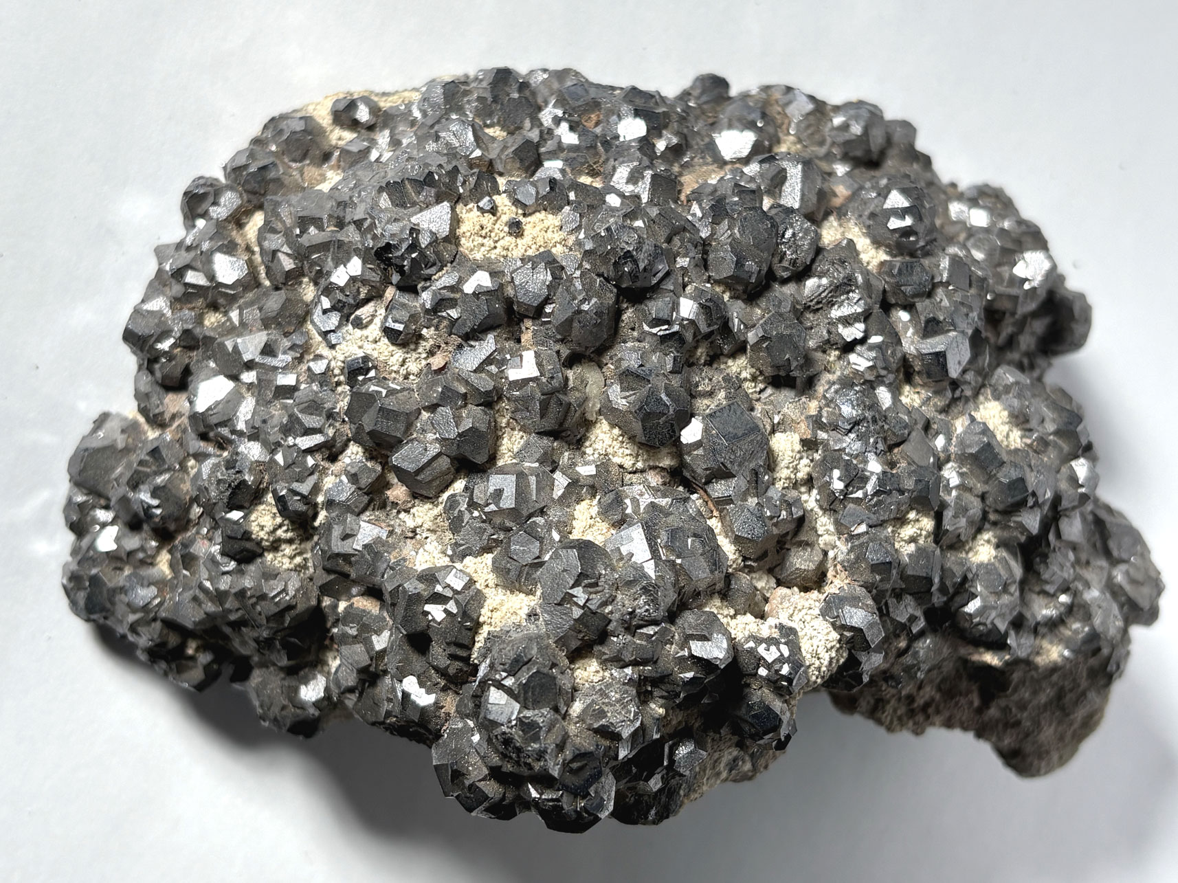 La galène est un sulfure de plomb de formule chimique PbS, appartenant à la classe des sulfures. Elle cristallise dans le système cubique (isométrique), adoptant une structure de type halite où chaque ion plomb est entouré de six ions soufre. Cette organisation explique son habitude fréquente en cubes parfaits ou en octaèdres.