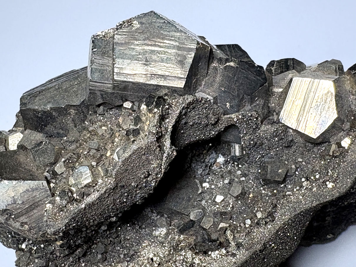 Les spécimens du Pérou sont appréciés pour leur éclat métallique intense et leurs formes cristallines nettes, illustrant parfaitement la cristallisation cubique de ce minéral emblématique.