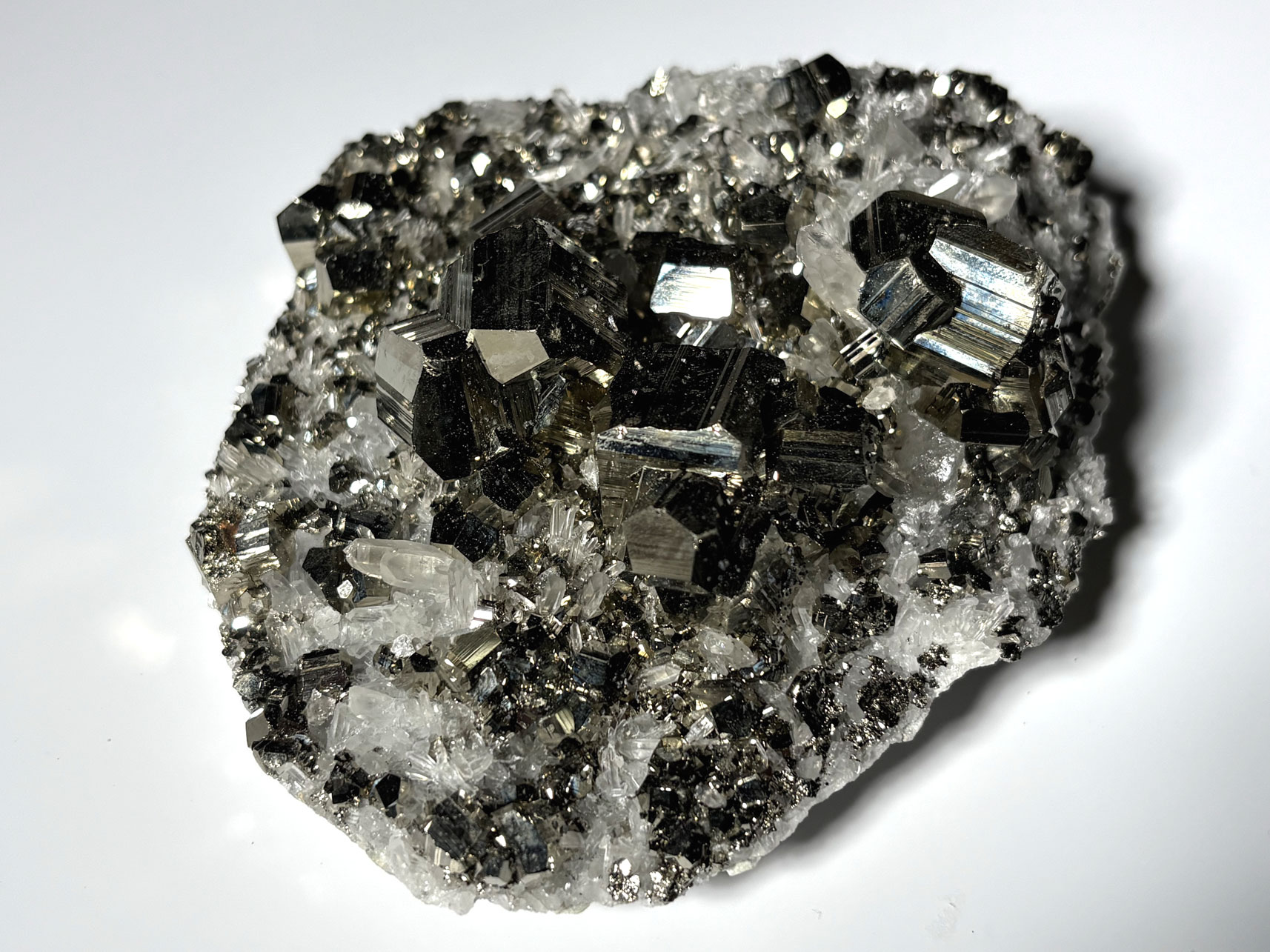 La pyrite se forme par précipitation chimique en milieu réducteur (milieux sédimentaires) ou par activité hydrothermale, où des fluides riches en fer et en soufre cristallisent dans des fractures.