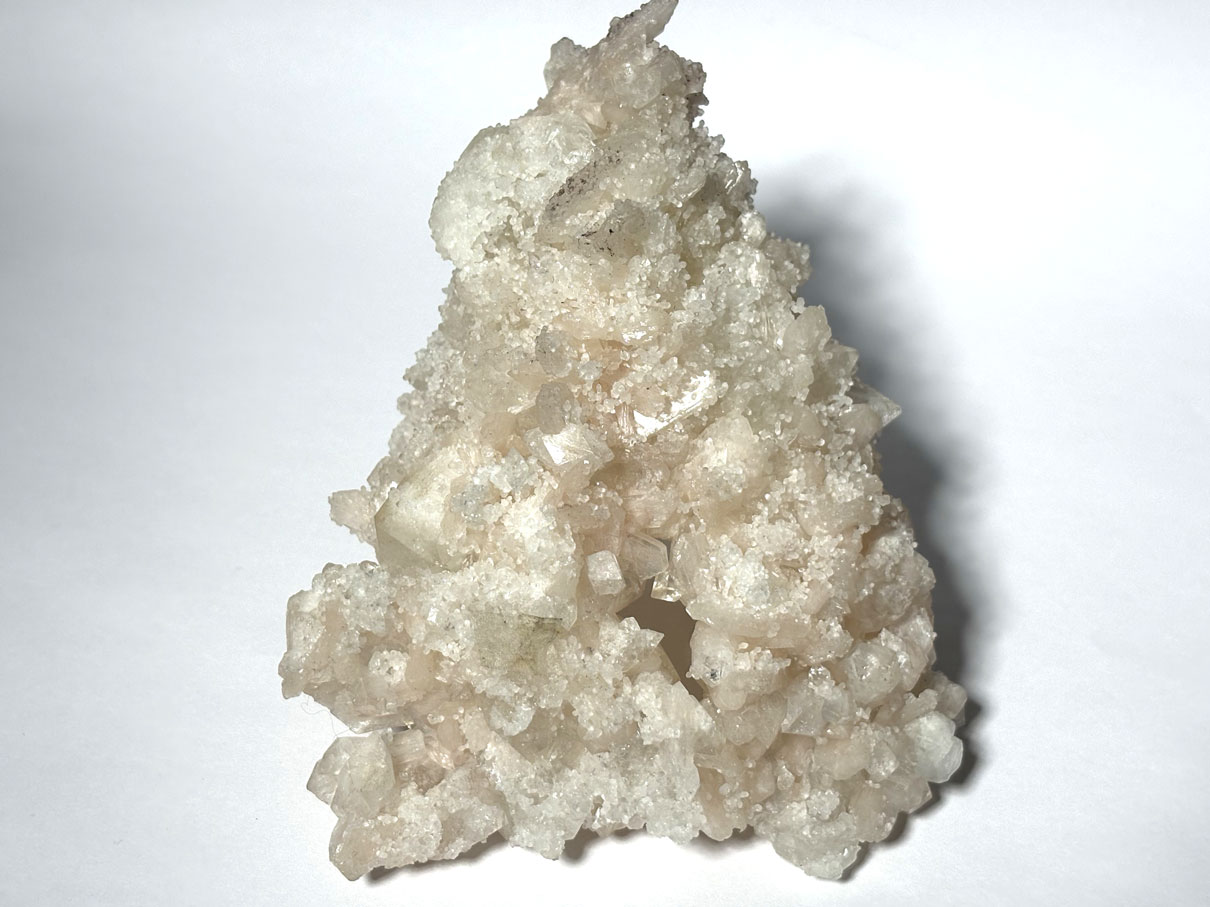 L’apophyllite désigne un groupe de phyllosilicates hydratés riches en calcium et potassium, de formule générale KCa₄Si₈O₂₀(F,OH)·8H₂O (pour la fluorapophyllite, la plus courante). Elle cristallise dans le système tétragonal, avec une structure constituée de feuillets silicatés reliés par des cations Ca²⁺ et K⁺, ainsi que des molécules d’eau structurales.