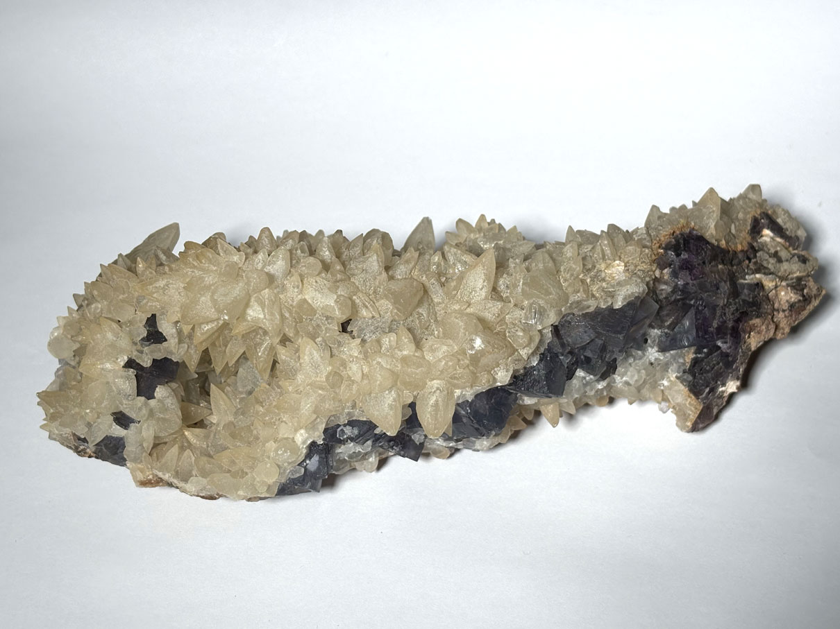 Cette paragenèse illustre une succession hydrothermale classique, très appréciée pour le contraste géométrique et chromatique des cristaux.