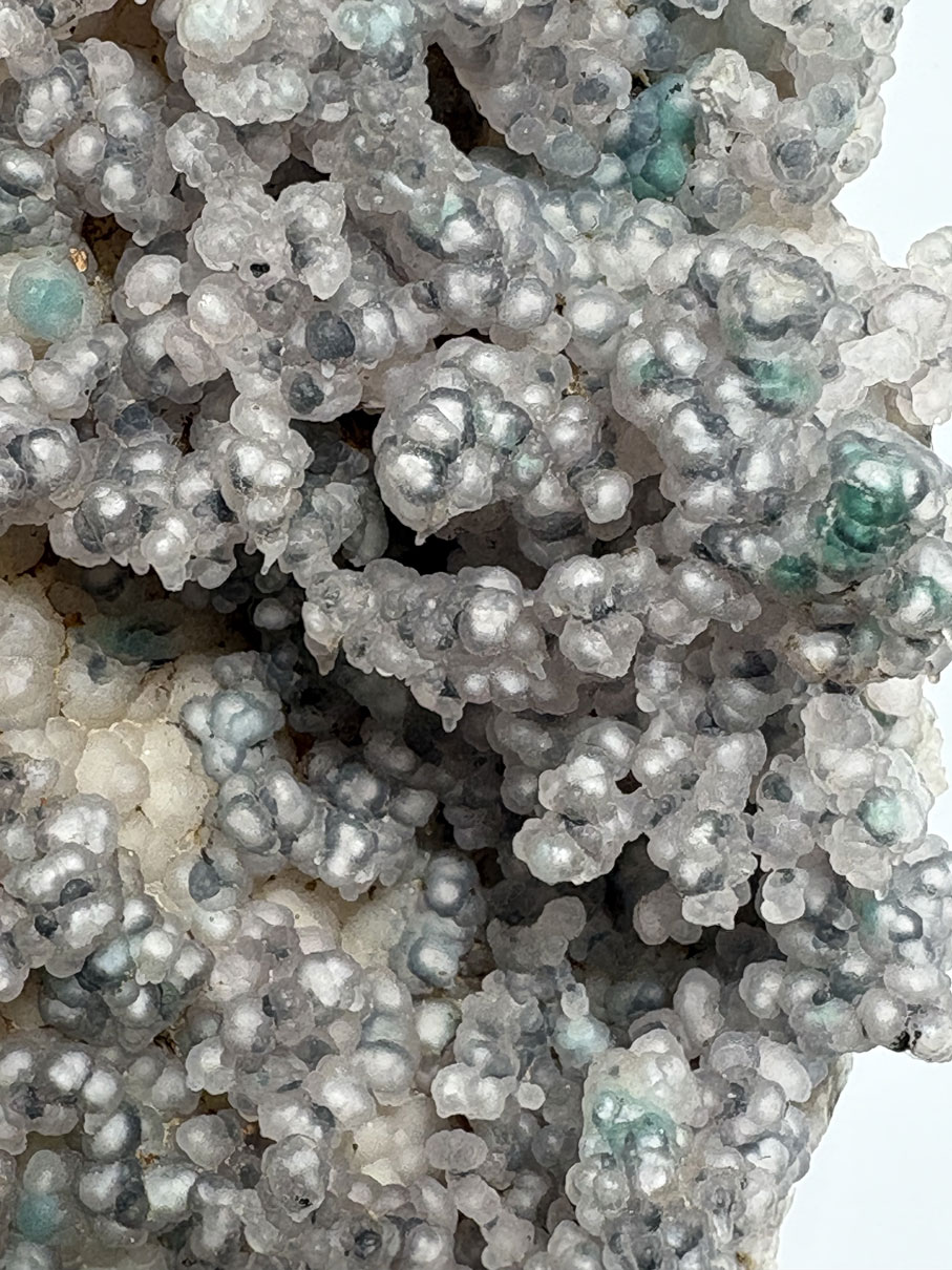 Souvent associée à la malachite, l’azurite ou la cuprite, la chrysocolle peut être naturellement silicifiée, augmentant sa dureté.