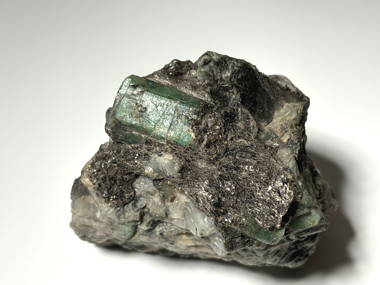 Dans l’État de Bahia, au Brésil, les émeraudes se forment dans des environnements métamorphiques et hydrothermaux, souvent liés à des roches riches en béryllium en interaction avec des roches riches en chrome ou vanadium. Les cristaux peuvent être inclus dans des schistes ou des veines.