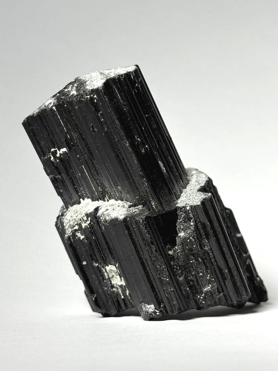 La tourmaline noire correspond principalement au schorl, membre riche en fer du groupe complexe des tourmalines. Sa formule idéale est NaFe²⁺₃Al₆(BO₃)₃Si₆O₁₈(OH)₄. Elle appartient aux cyclosilicates et cristallise dans le système trigonal.