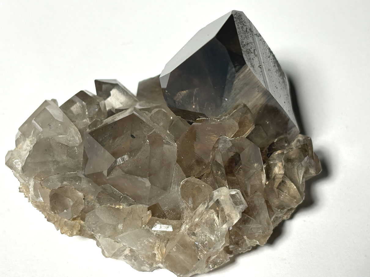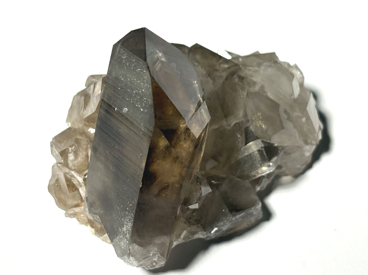 La couleur brun clair à brun foncé caractéristique provient de l’irradiation naturelle agissant sur des traces d’aluminium substituées au silicium dans le réseau cristallin, créant des centres colorés qui donnent l’aspect fumé. L’intensité de la coloration dépend de la concentration en aluminium et du temps d’exposition à l’irradiation naturelle.