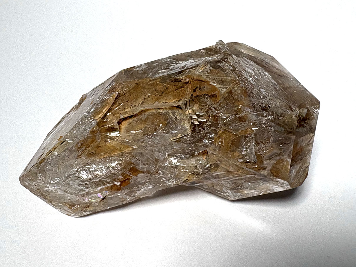 Le quartz « fenêtre » n’est pas une variété chimique distincte mais une forme cristalline particulière de quartz (SiO₂), appartenant aux tectosilicates. Il cristallise dans le système trigonal, avec une structure tridimensionnelle de tétraèdres SiO₄ liés par des oxygènes partagés.