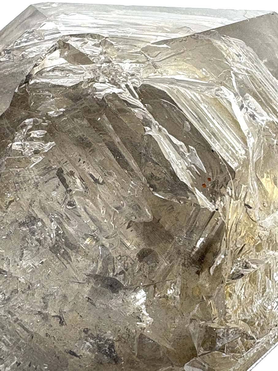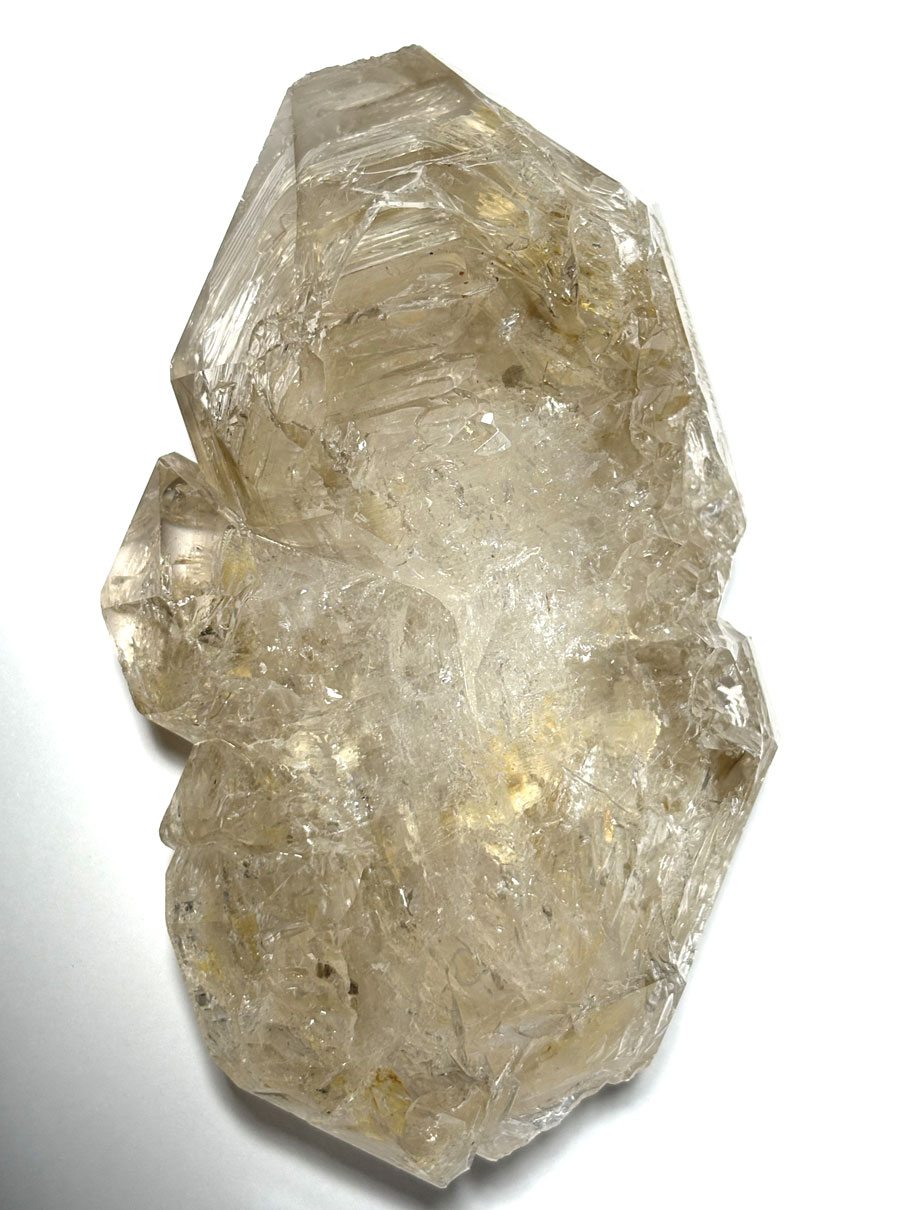 Le quartz « fenêtre » n’est pas une variété chimique distincte mais une forme cristalline particulière de quartz (SiO₂), appartenant aux tectosilicates. Il cristallise dans le système trigonal, avec une structure tridimensionnelle de tétraèdres SiO₄ liés par des oxygènes partagés.